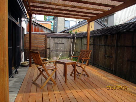 和風庭園からウッドデッキを中心