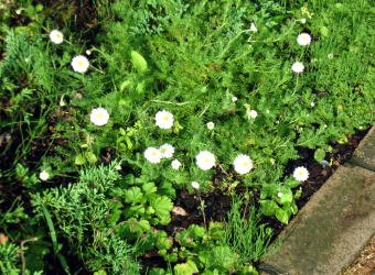 生育旺盛で大きく育ち4月下旬には黄色や白色の花