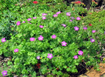 初夏から夏にかけて赤、青、紫系の花色で楽しませて