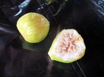 黄緑色のまま熟します。果肉は白っぽいいわゆる