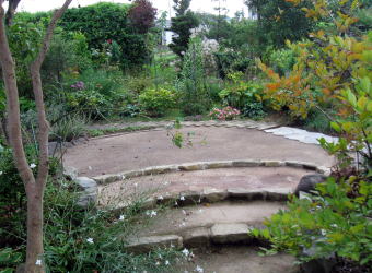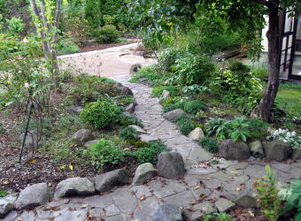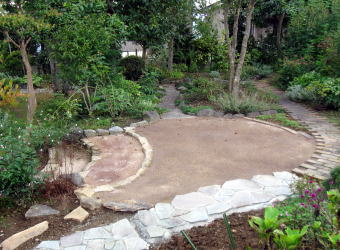 多数の樹木の植わっている場所での庭づくり、リフォ
