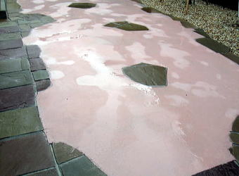 自然石を周囲に不規則に設置した中にカラーコンク