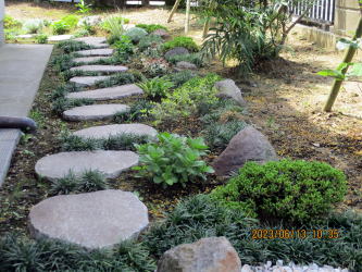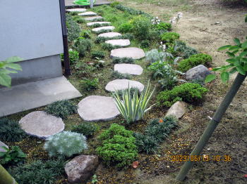 玄関から駐車場までの間に飛び石を敷設しました。