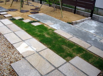駐車場のコンクリートから庭への移行部分です。