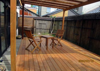 ウッドデッキとパーゴラには素材としてセランガンバツ