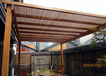 パーゴラには夏場、遮光ネットを張ります。