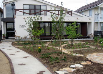 建物と外構とお庭がナチュラルにコーディネイトされてい