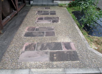 玄関前のリフォームです。通路を自然石の石板と豆砂利